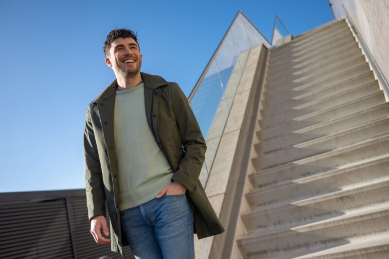 Especially if the weather remains unpredictable, it can be wise to put together a layered outfit. Start with a basic T-shirt and build up your outfit by wearing a dress shirt over it. Most men then opt for a stylish blazer or a fitting pullover. Here, too, you can choose from eye-catching colors! The greatest advantage is that you can easily remove a layer without ruining your outfit. If there’s a brisk wind, you can just as easily add an extra layer.