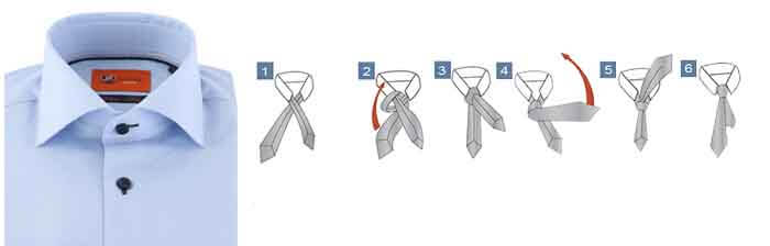 The choice of which tie knot you make depends on two things: the thickness of your necktie and the size of your collar. It’s also advisable to take a look at the shape of your face. Simply put, you’re better off with narrow knots if you have a slim and long face, and you should go for a wide and/or thick knot if you have a round face or a broad neck. This visually balances the overall look.
