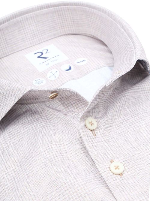 R2 Shirt Glenchek Travel Beige R2 Shirt Glenchek Travel Beige in the color Beige with a fit Modern-Fit is made from Nylon and Cotton with Standard with a Printed and Checkered design and Long sleeves.